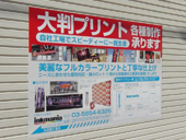 ペットフィルムと高耐候塩ビの2重構造で、溶剤インクジェットプリントにより長期屋外使用可能なポスターです。